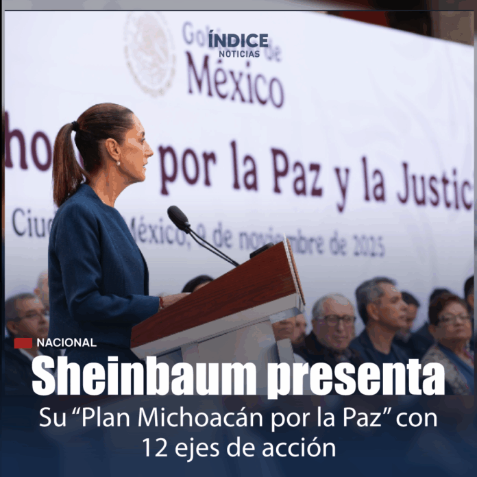 La presidenta de México, Claudia Sheinbaum Pardo (CSP), presentó los 12 ejes del Plan Michoacán por la Paz y la Justicia, una estrategia integral con más de 100 acciones y una inversión de más de 57 mil millones de pesos (mdp).
