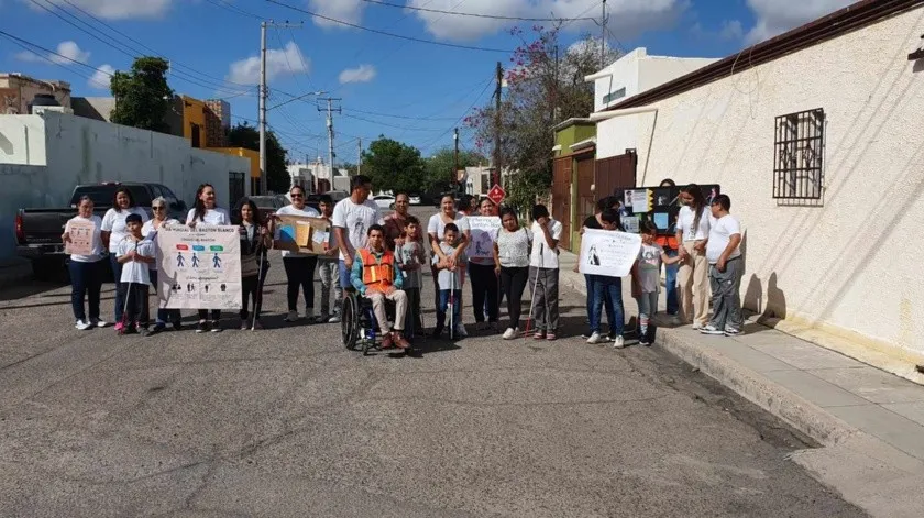 HERMOSILLO, Sonora.- Para sensibilizar a la comunidad sobre el respeto al cruce peatonal de las personas con discapacidad visual y conmemorar el Día Mundial del Uso del Bastón Blanco, alumnos y docentes del Instituto Iris realizaron una actividad, en la colonia Las Granjas.