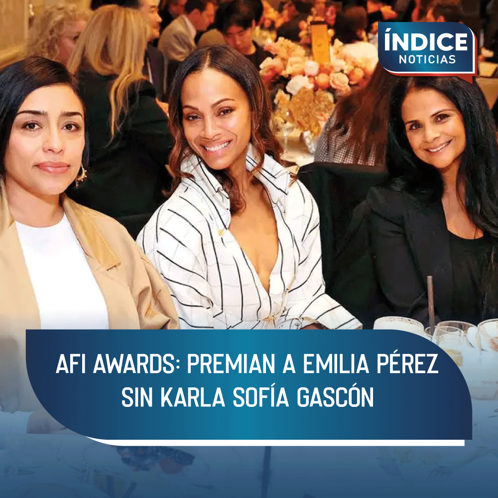 Durante los AFI Awards, realizados por la organización sin fines de lucro que promueve la excelencia educativa en el séptimo arte para inspirar esperanza y empatía, se tuvo la asistencia la mexicana Adriana Paz, la dominicana Zoe Saldaña, Édgar Ramírez y Bela Bajaria CCO de Netflix, en representación del controversial musical del cineasta Jacques Audiard. Por supuesto, Karla Sofía Gascón brilló por su ausencia, como también lo hará mañana en la ceremonia de los premios Goya, en España.