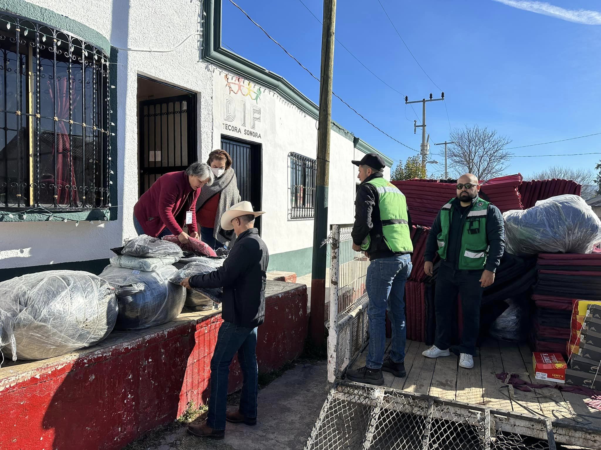 Yécora, Sonora.- Agradecemos a nuestro Gobernador del Estado Dr. Alfonso Durazo y a Juan Manuel González Coordinador de protección civil por el apoyo en chamarras, zapatos, cobijas y colchonetas, las cuales se entregaron a los más vulnerable y que les serán de gran ayuda para mitigar el frío.