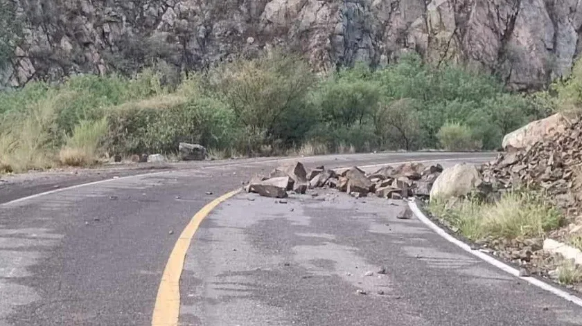 SONORA.- Se reportan derrumbes de piedras en la cinta asfáltica de la carretera Los Hoyos-Moctezuma como resultado de las fuertes lluvias que han azotado la región.