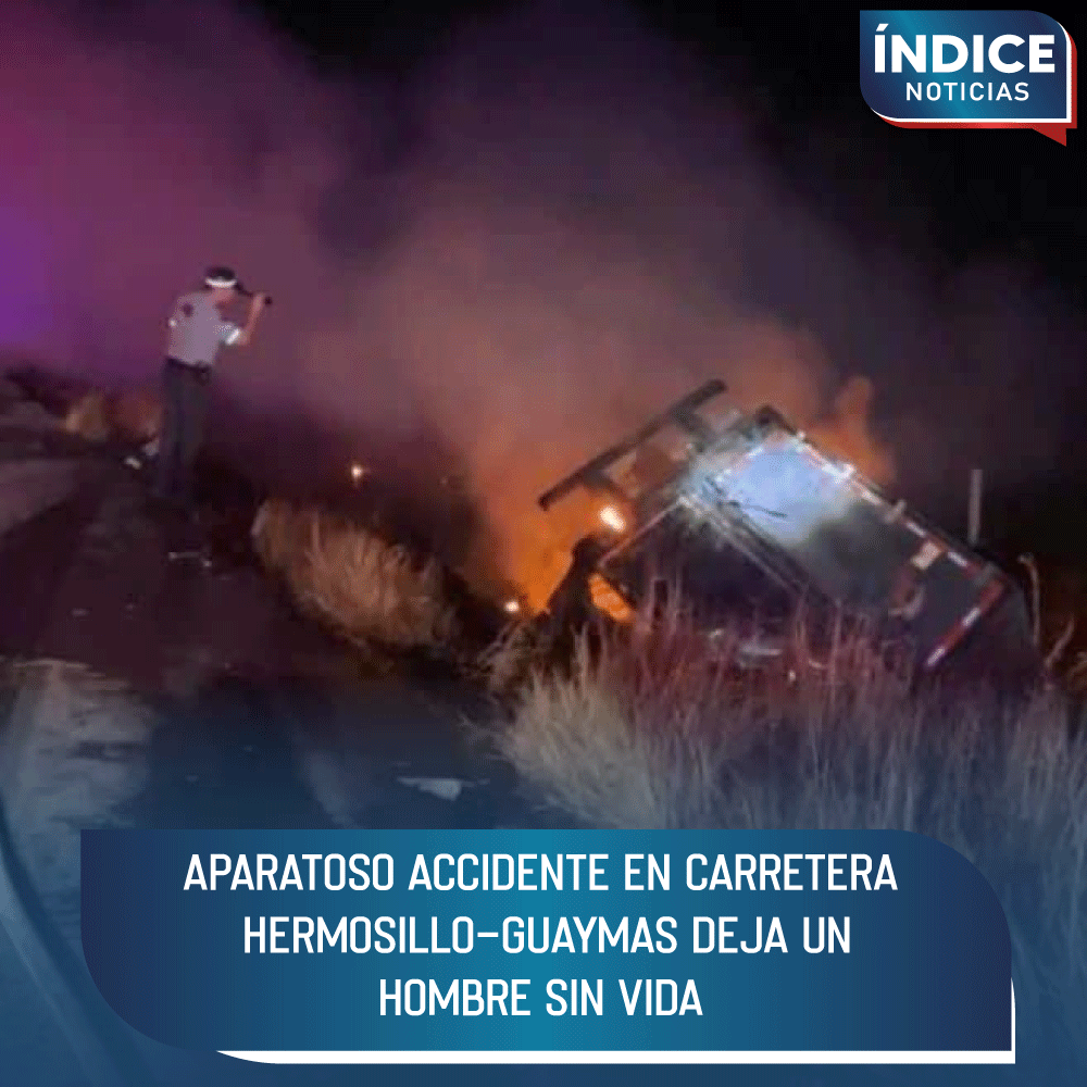 Un trágico accidente se registró durante la noche de este jueves 13 de marzo sobre la carretera Hermosillo-Guaymas, al impactarse un tráiler contra un camión mezclador de cemento ‘tipo trompo’ que se encontraba estacionada en el acotamiento, dejando como saldo a una persona sin vida.