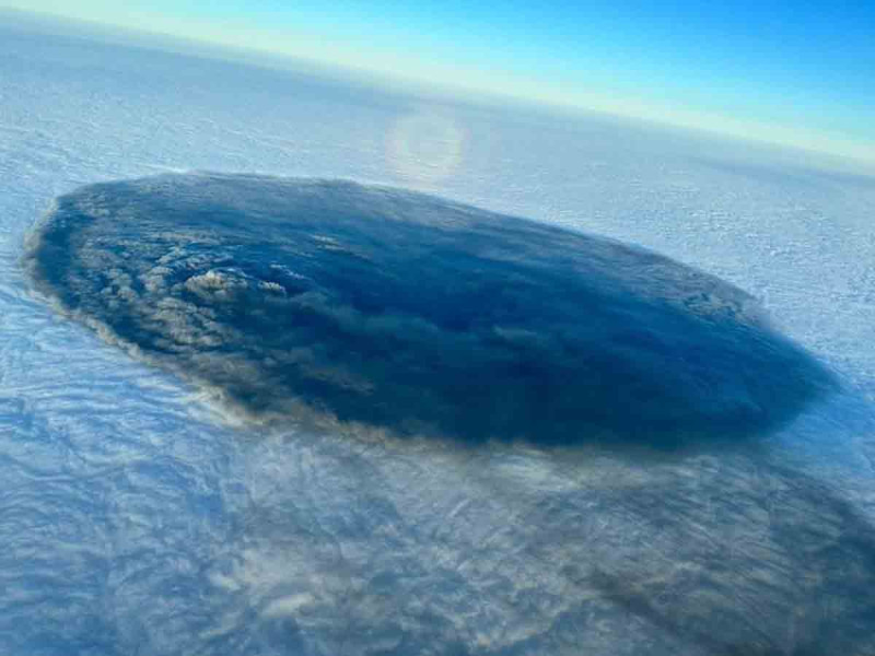 Desde un avión comercial, fue captada la nube de lluvia ácida tóxica tiene un radio de 200 millas y que resalta por su color ennegrecido en forma de hongo en medio de las nubes de vapor de agua.