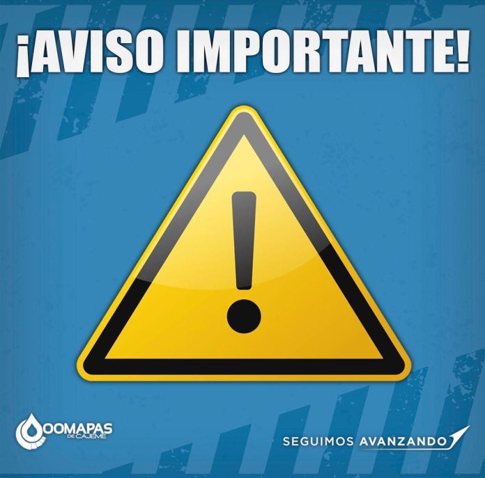 AVISO 8,Feb, 2025 FacebookTwitterPinterestWhatsApp AVISO Febrero 8 del 2025. Para atender fuga en línea principal de agua, se apagará el pozo de Colonia Severo Girón En Providencia Sonora. Se espera restablecer el servicio a las 12:00 horas de este mismo sábado #OOMAPASC