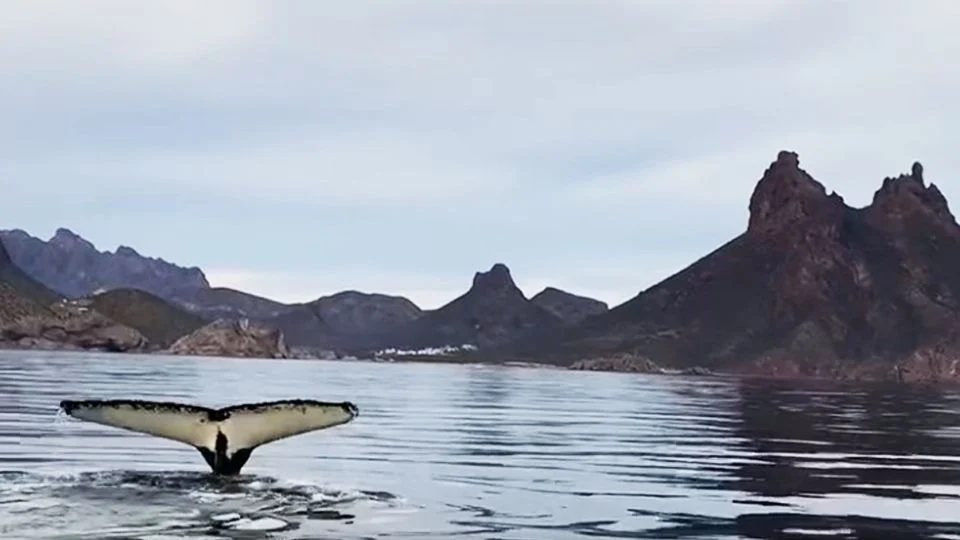 San Carlos, Sonora.- Un avistamiento cercano de ballenas frente a las costas del pueblo mágico de San Carlos, se dio este miércoles 29 de noviembre por la mañana, causando el asombro de paseantes en embarcaciones menores.
