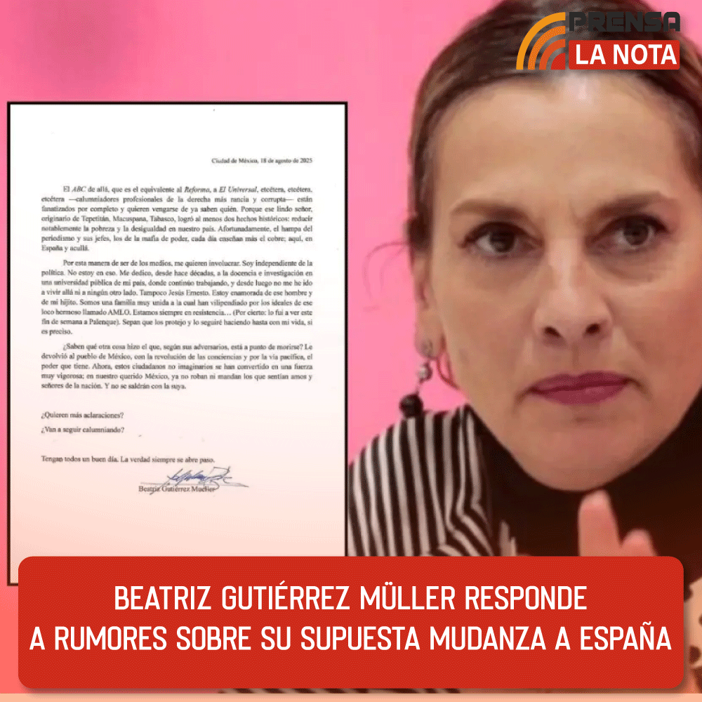 Beatriz Gutiérrez Müller, esposa del expresidente Andrés Manuel López Obrador, rompió el silencio este lunes ante las versiones que circularon en medios internacionales sobre una presunta mudanza a España junto a su hijo Jesús Ernesto.