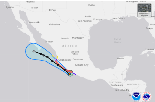 “Se establece zona de vigilancia por efectos de huracán desde Cabo Corrientes, Jalisco, hasta Punta Mita, Nayarit, zona de prevención por efectos de huracán desde Zihuatanejo, Guerrero, hasta Cabo Corrientes, Jalisco.