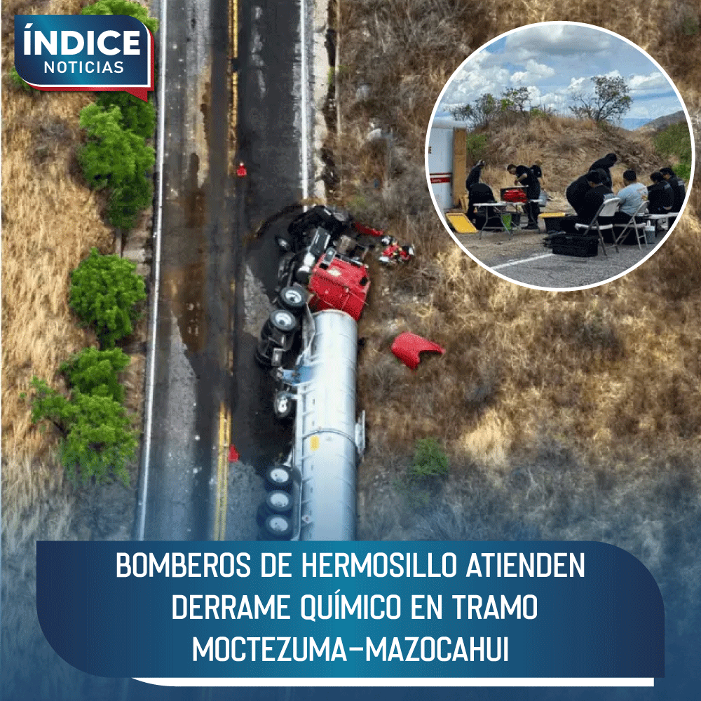 El volcamiento de un camión cisterna que transportaba sustancias químicas en el kilómetro 114 de la carretera Moctezuma-Mazocahui provocó una intensa movilización de cuerpos de emergencia la mañana de este jueves.