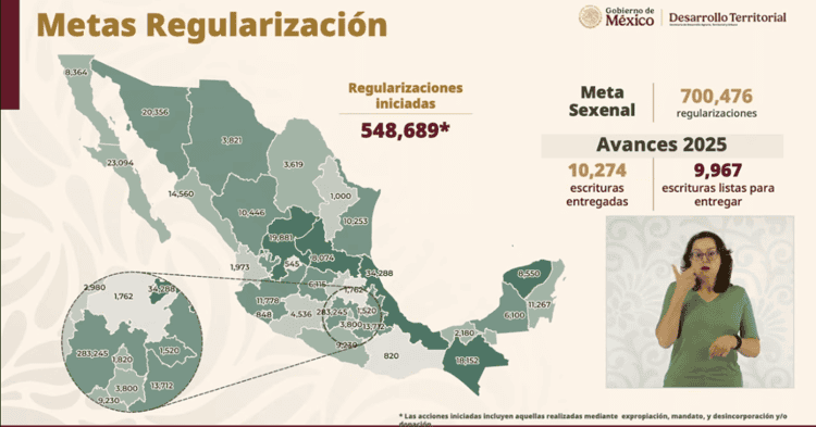 De las regularizaciones iniciadas 20 mil 356 son de Sonora. Mencionaron que la meta sexenal es de 700 mil y en lo que va de la administración actual llevan 700 mil 476 regularizaciones.
