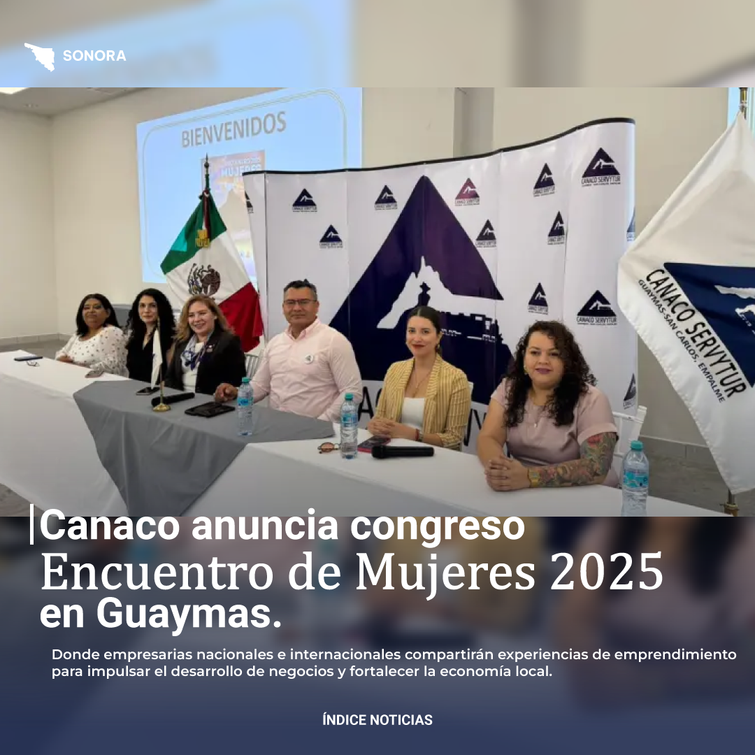 La Cámara Nacional de Comercio (Canaco) anunció la realización del congreso “El Encuentro de Mujeres 2025” en Guaymas, con la participación de ponentes nacionales e internacionales que compartirán experiencias sobre la creación y desarrollo de empresas.