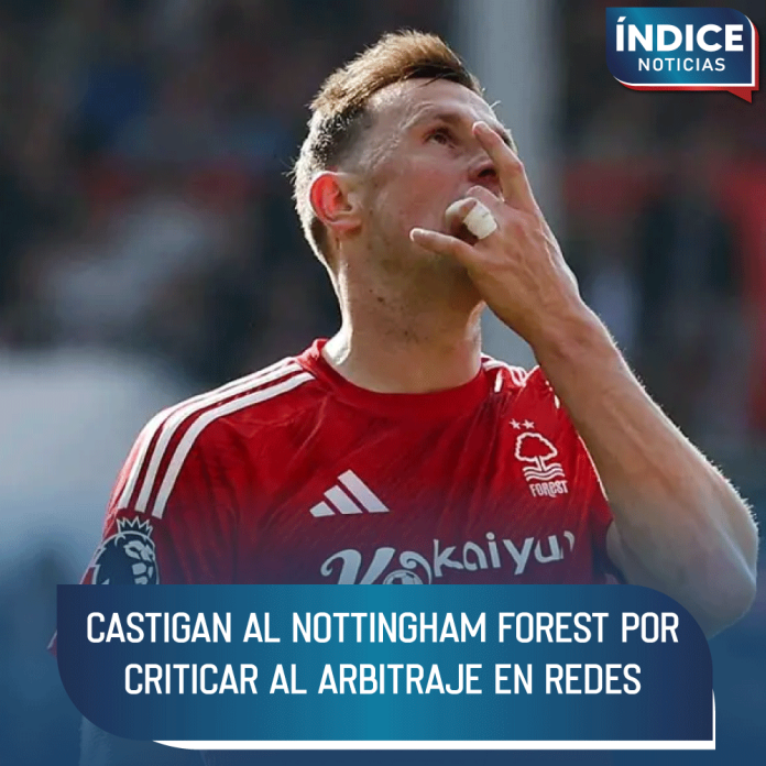 El conjunto del Nottingham Forest, tercer clasificado de la Premier League, tendrá que pagar una multa de 750 mil libras (unos 970 mil dólares) por un mensaje en las redes sociales en el que puso en duda la imparcialidad de un arbitraje, confirmaron los responsables del futbol inglés este lunes.