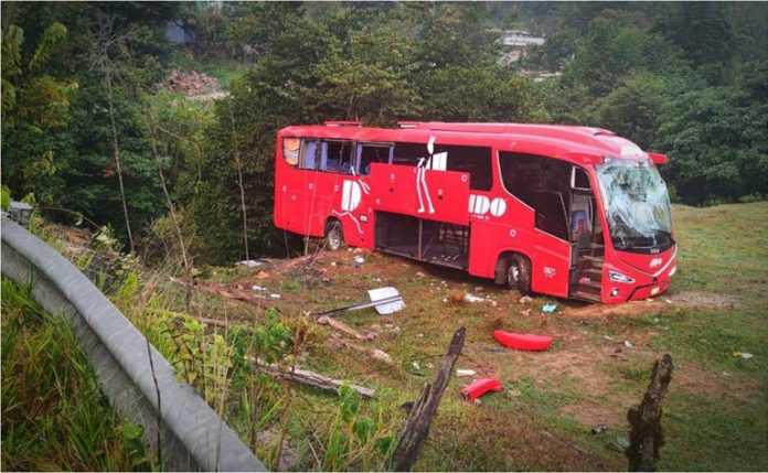 El autobús cubría la ruta Ciudad de México-Huejutla y registró primero una salida de camino, para posteriormente impactarse contra la barra de contención, y terminar en el barranco.