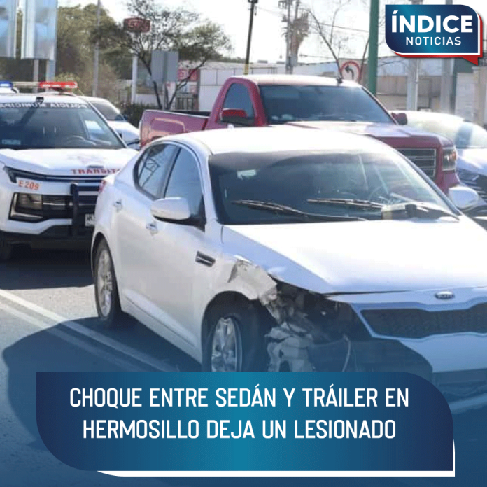 Un accidente vehicular entre un sedán y un tráiler de carga ocurrió este martes en la intersección de las calles García Morales y El Jet, en Hermosillo.