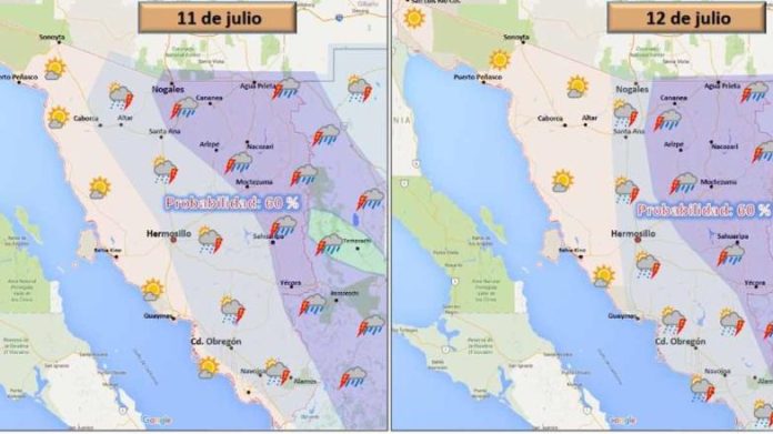 Cielos cubiertos con un 60 por ciento de probabilidad de lluvia. Para mañana miércoles en Navojoa se esperan temperaturas mínimas de 27 grados centígrados y máximas de 44 grados.