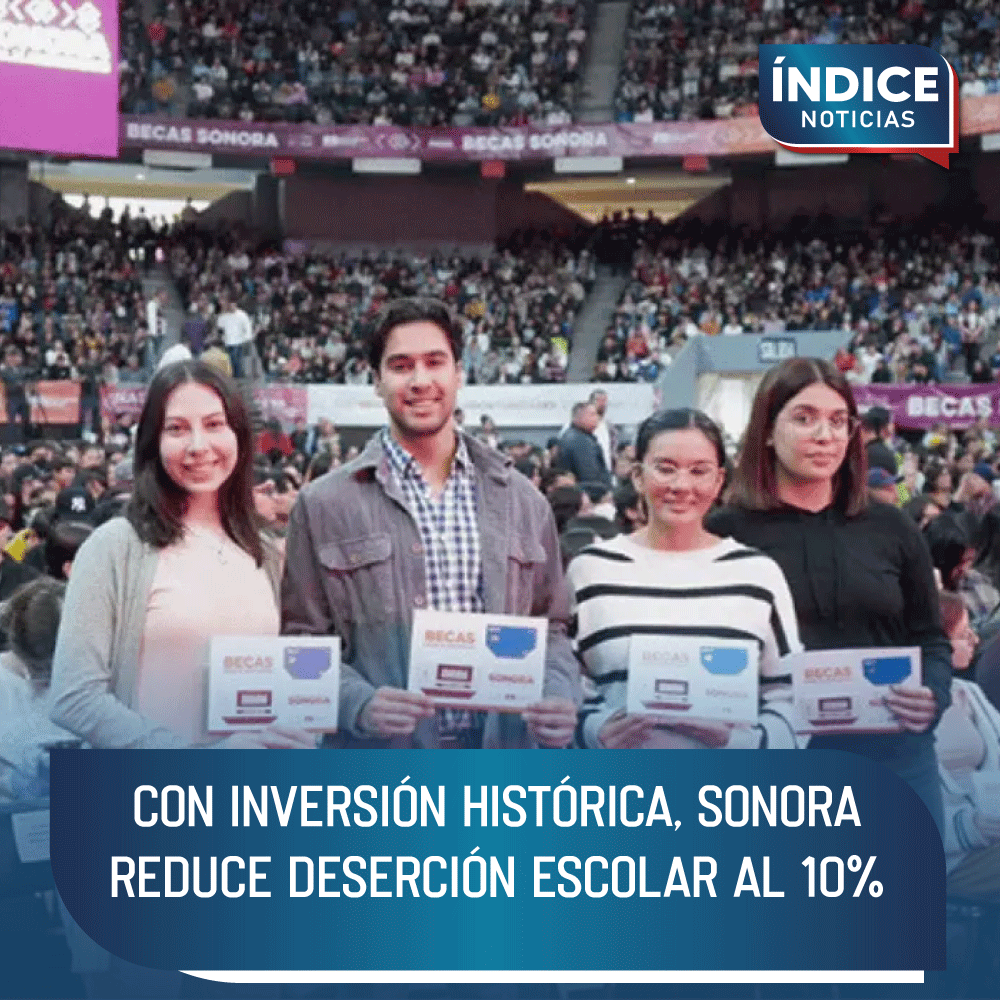 Durante la administración del gobernador Alfonso Durazo Montaño, se han entregado 465 mil 197 becas de nivel básico y superior, con una inversión histórica de más de 2 mil 247 millones de pesos, lo que ha permitido reducir la deserción escolar al 10 por ciento, revirtiendo la tendencia negativa de sexenios anteriores.