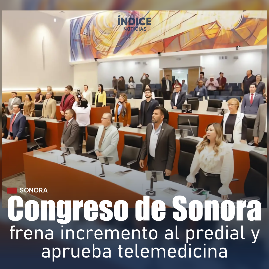 urante el último día del Primer Periodo de Sesiones Ordinarias del Segundo Año de la 64 legislatura, el Congreso de Sonora aprobó las Leyes de Ingresos y los Presupuestos de Ingresos de los 72 municipios de Sonora, que establecen un tope del 10 por ciento al incremento del impuesto predial en casas habitación y su aplicación efectiva en los recibos de cobro para 2026, así como una reforma a la Ley del Isssteson para incorporar la telemedicina.