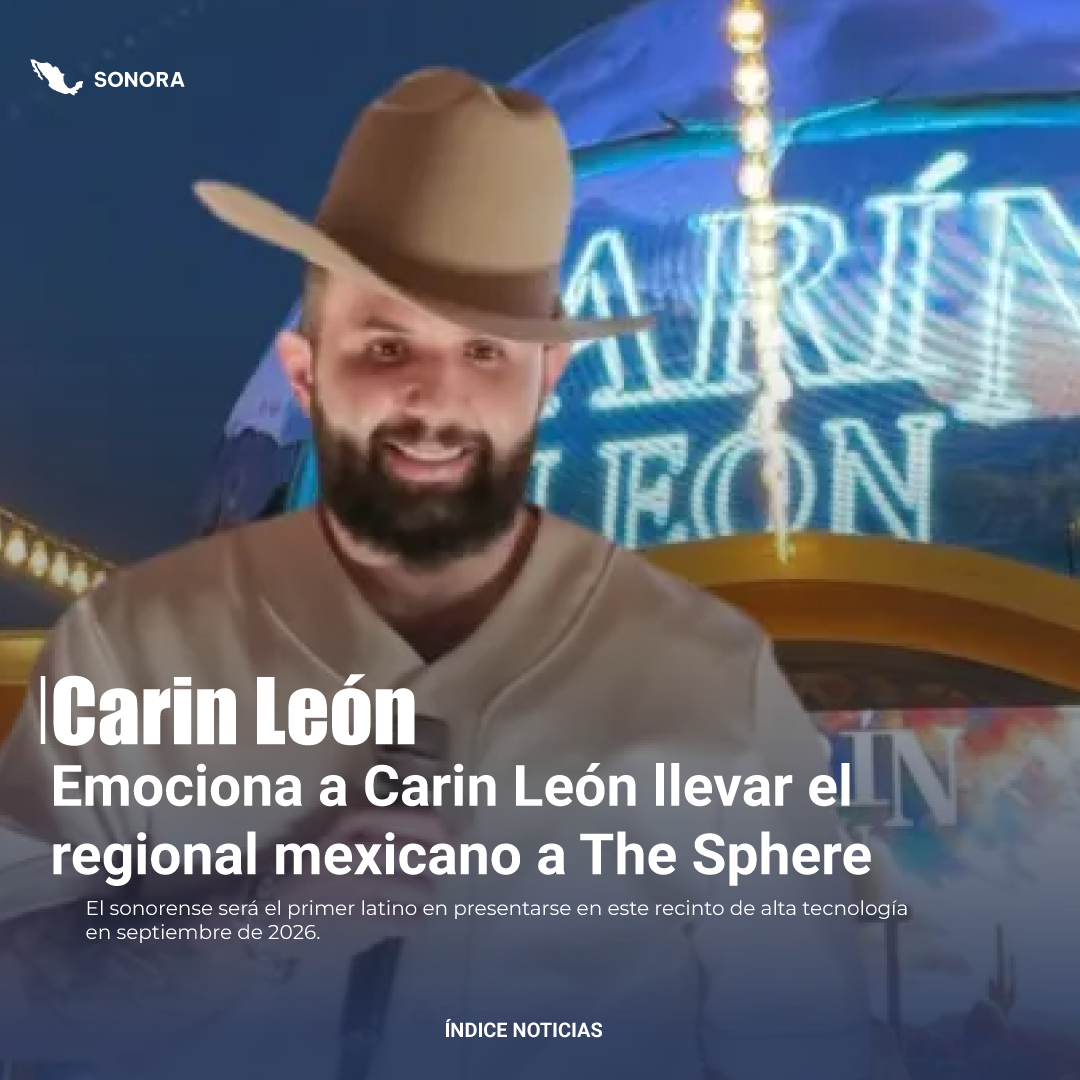 Carin León vive uno de los momentos más significativos de su carrera artística, al anunciar su participación como el primer mexicano y primer artista latino en presentarse en The Sphere, el recinto de entretenimiento más avanzado del mundo, ubicado en Las Vegas.