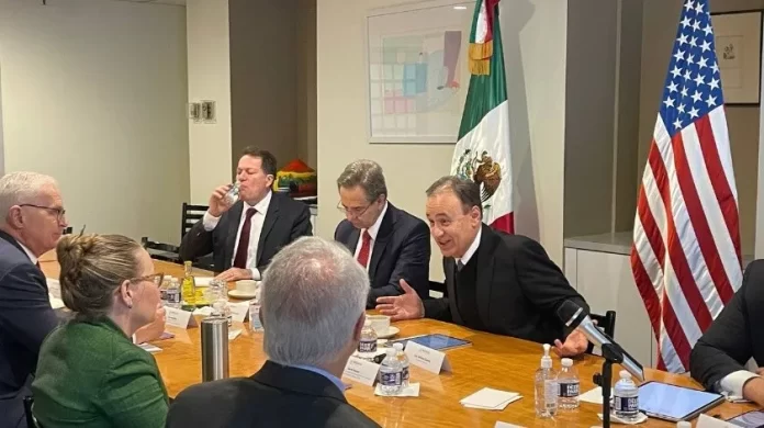 En la embajada de México en Washington el gobernador Durazo Montaño, acompañado por el embajador Esteban Moctezuma Barragán, sostuvo un encuentro de trabajo con integrantes de la Asociación de la Industria de Semiconductores para exponer las vertientes del Plan Sonora, enfocado en generación de energía solar, licuefacción de gas natural, explotación del litio y modernización del puerto de Guaymas.