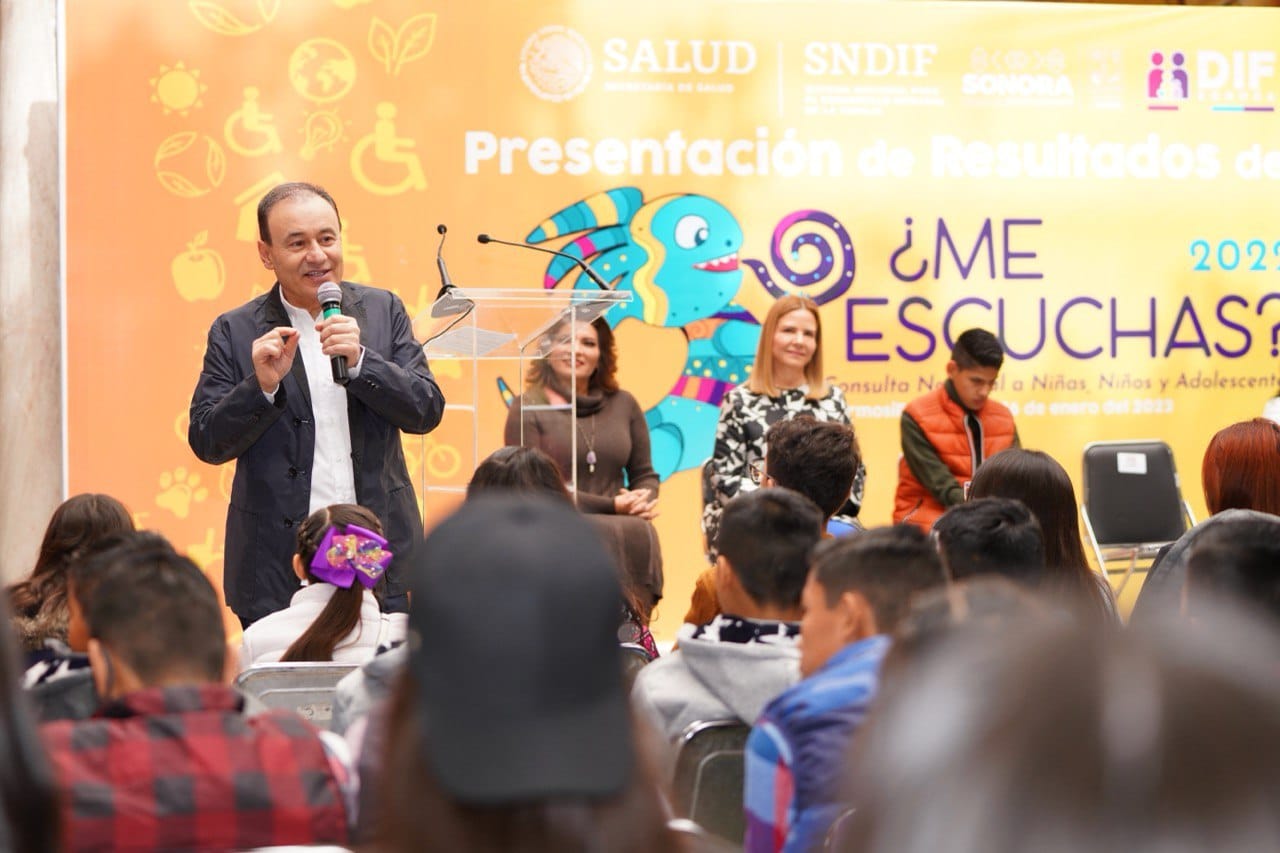 Hermosillo, Sonora; 26 de enero del 2023.-Las niñas, niños y adolescentes en Sonora son escuchados, por lo que el Gobierno de Sonora tiene el compromiso de trabajar para garantizar el cumplimiento de sus derechos, aseguró el gobernador Alfonso Durazo Montaño.