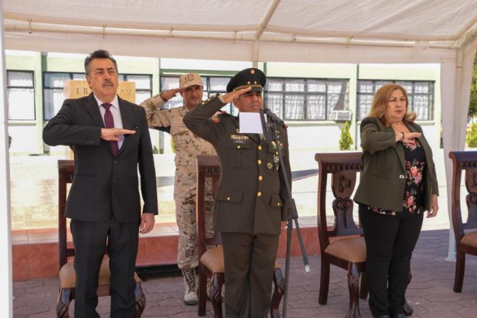 Encabezados por el Presidente Municipal Carlos Javier Lamarque Cano, se llevó a cabo durante este viernes en el 60 Batallón de Infantería la toma de protesta de bandera de los soldados del Servicio Militar Nacional, clase 2004, remisos y mujeres voluntarias.