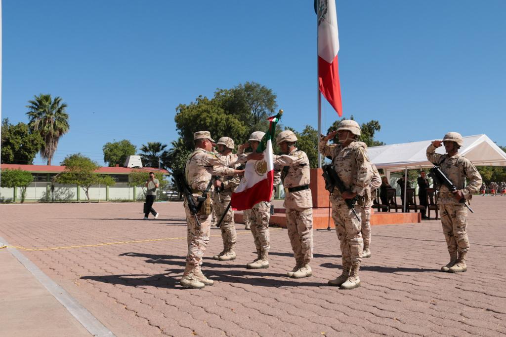 Como parte del protocolo, el segundo Comandante del 60 Batallón de Infantería, Teniente Coronel Antonio Enrique Cepeda Cruz, efectuó la toma de protesta de bandera a las y los jóvenes que realizan su servicio militar, a quienes exhortó a sentirse orgullosos de nuestro País.