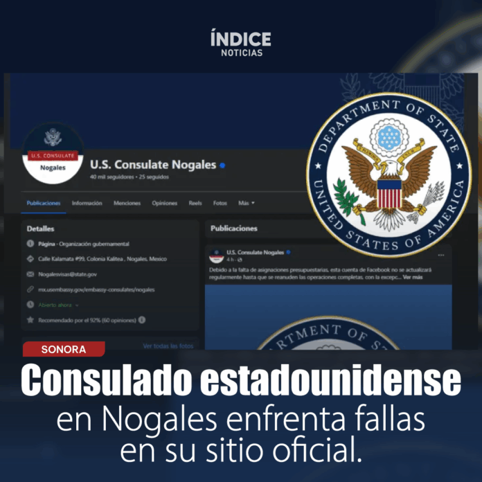 La página oficial del Consulado Americano en Nogales se ha visto afectada debido a la falta de asignaciones presupuestarias por parte de las autoridades estadounidenses. Como resultado, la cuenta de Facebook del consulado no se actualizará regularmente hasta que se reanuden las operaciones completas.
