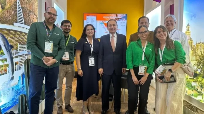 En el marco de la celebración del Tianguis Turístico en la capital del País, el mandatario sonorense se reunió con representantes de la aerolínea Viva Aerobús, para exponer las estrategias que el Gobierno de Sonora está realizando en materia de promoción turística.