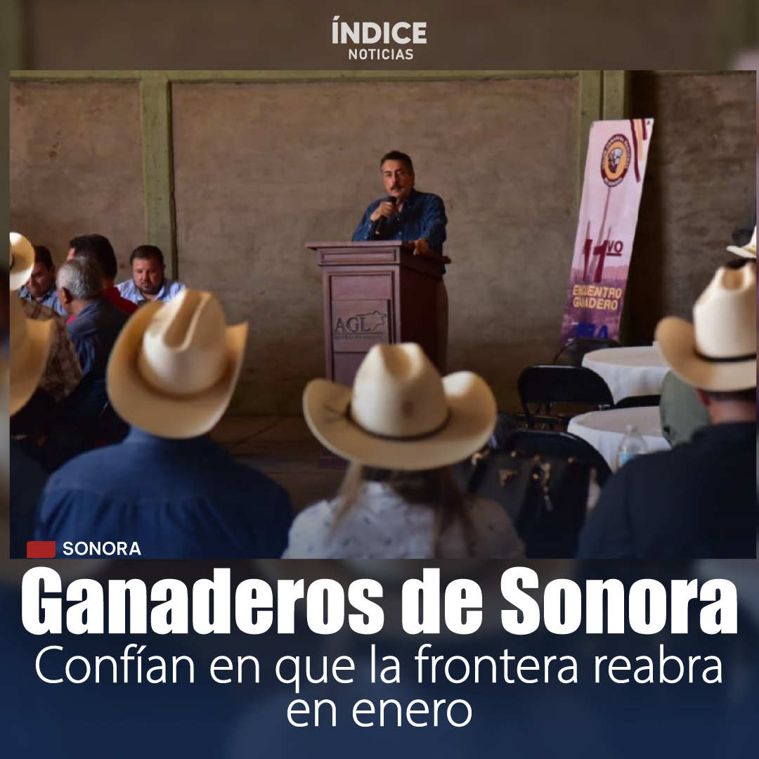 La Unión Ganadera Regional de Sonora (UGRS) prevé que la reapertura de la frontera para exportación de ganado en pie ocurra en enero, tras señales “favorables” de USDA y ACES y una revisión programada en diciembre a las cuarentenarias, informó Juan Ochoa Valenzuela en entrevista con Expreso 24/7 con Marcelo Beyliss.