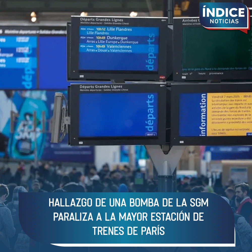 Una bomba sin explotar, que data de la Segunda Guerra Mundial, obligó este viernes a paralizar completamente las operaciones ferroviarias en la concurrida estación Gare du Nord, en París, causando graves trastornos en el transporte público y en el tráfico vehicular en la capital francesa.