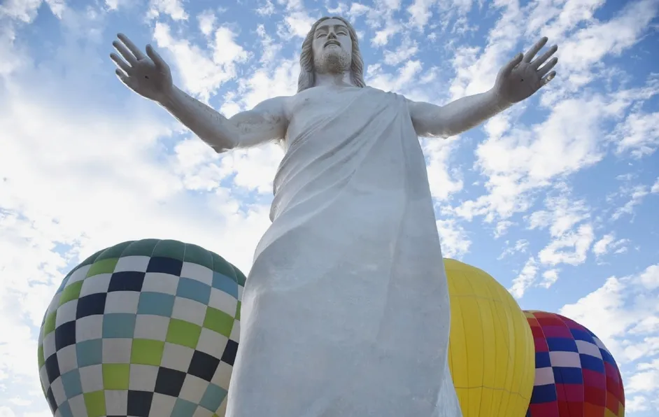 La escultura mide 33 metros de altura, superando por un metro al icónico Cristo Redentor de Brasil. Se construirá una iglesia en el centro turístico.
