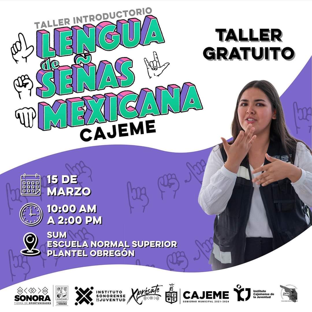El Director del Instituto de la Juventud, Fernando Félix Garza, mencionó que el ICJ, en coordinación con el Instituto Sonorense de la Juventud, llevará a cabo un taller introductorio de lengua de señas mexicanas, y el taller gratuito de rap y habilidades para la vida, con el objetivo de que, a través de ambos, se abone a un municipio más inclusivo que garantice oportunidades a los jóvenes cajemenses.