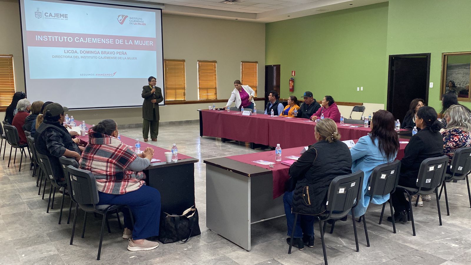 El Gobierno Municipal a través del Instituto Cajemense de la Mujer (ICM), impartió una plática informativa a las y los comisarios y delegados de Cajeme, con el propósito de dar a conocer las acciones que realizan, así como fomentar la interacción, para así, combatir y erradicar la violencia hacia la mujer.