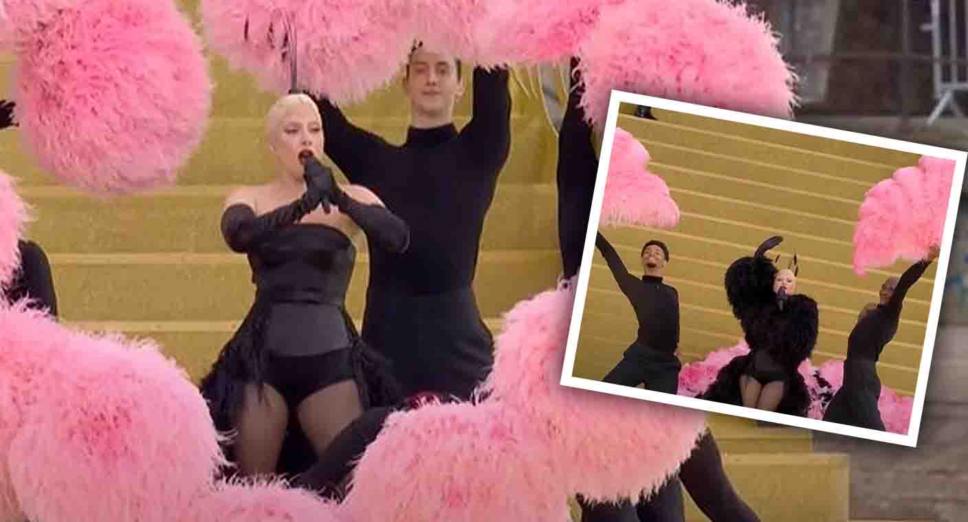 Lady Gaga salió, además, con una vestimenta típica de las bailarinas de cabaret, los cuales son muy tradicionales en Francia y son un espectáculo muy importante de la identidad francesa y parisina donde se han inspirado libros, canciones y películas.