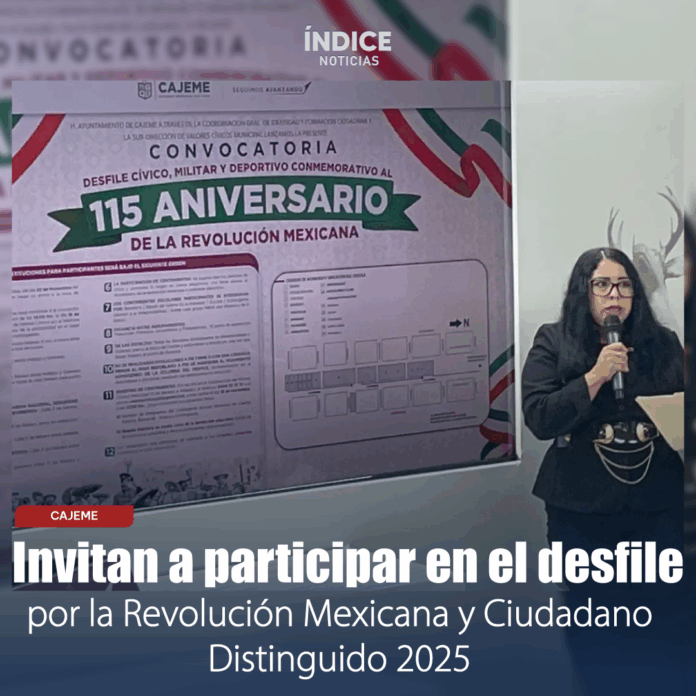 Cristina Valenzuela, subdirectora de Valores Cívicos de Cajeme, dio a conocer que ya se abrieron las convocatorias para participar en el desfile por el 115 aniversario de la Revolución Mexicana y para proponer a personas que puedan recibir el reconocimiento de Ciudadana y Ciudadano Distinguido 2025.