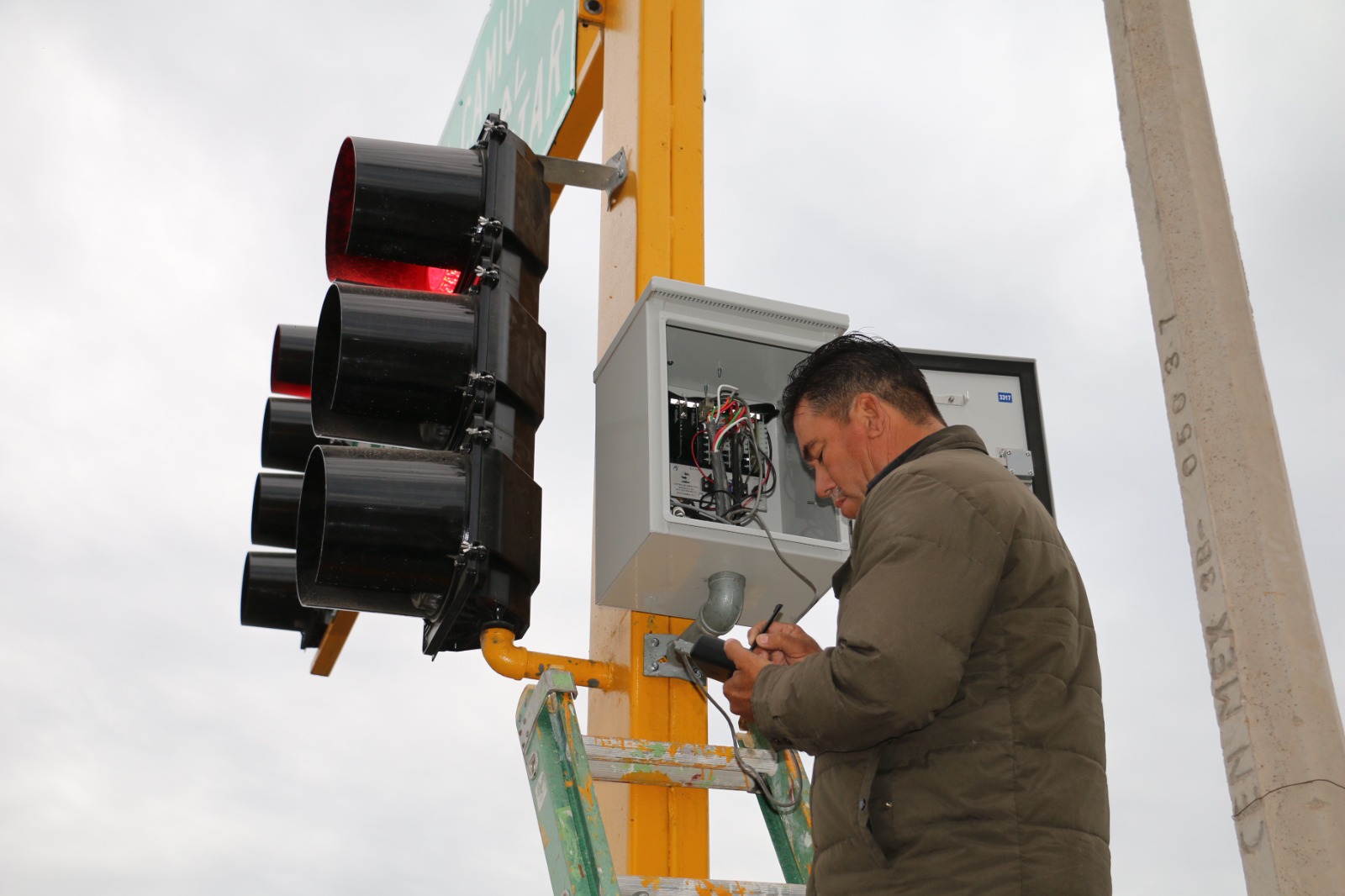 Recordó que el departamento de Semaforización de Tránsito Municipal elaboró las bases de los semáforos, así como la rehabilitación de postes, trabajos de pintura, luces nuevas, cerebro, cableado del semáforo y sincronización de los tres semáforos.
