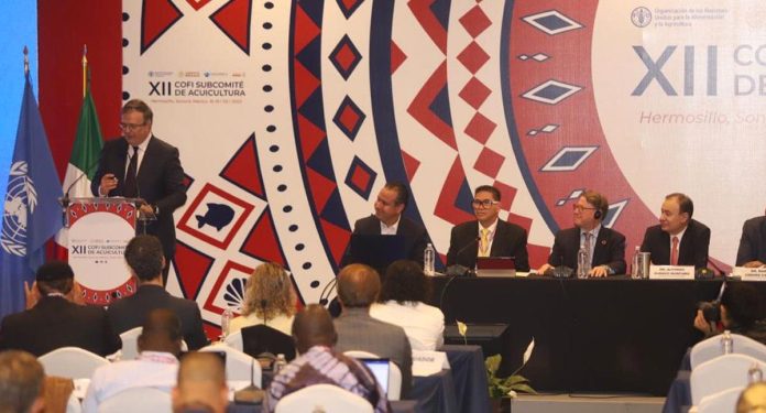 El canciller Marcelo Ebrard destacó la importancia de la FAO en la lucha contra el hambre durante su discurso en la 12va Sesión del Subcomité de Acuicultura en Hermosillo, Sonora.
