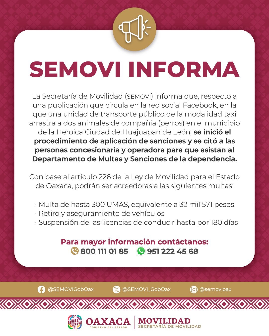 Ante la presión mediática, la Secretaría de Movilidad de Oaxaca informó que se abrió una investigación a través de la Dirección Jurídica para revocar la concesión del taxi, esto en cumplimiento del artículo 187 de la Ley de Movilidad.