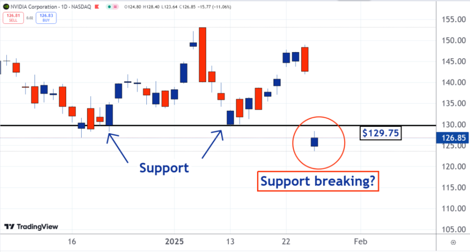Como se puede ver en el gráfico, recientemente ha habido soporte para NVIDIA alrededor del nivel de los 130 dólares. Las caídas de diciembre y principios de enero terminaron cuando las acciones llegaron a este soporte. Cada vez, le siguió un repunte o una subida.