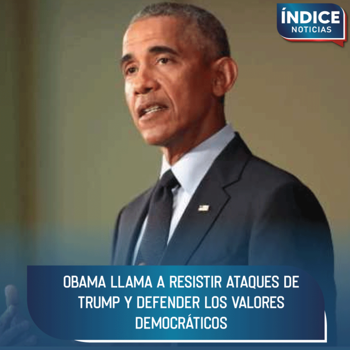 Desde Nueva York, el expresidente Barack Obama instó a los estadounidenses a defender la democracia ante las amenazas de la administración de Donald Trump.
