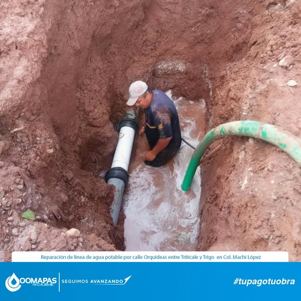 OOMAPAS DE CAJEME REALIZA REPARACIONES EN COL. MACHI LÓPEZ 13,Feb, 2025 FacebookTwitterPinterestWhatsApp Reparación de línea de agua potable por calle Orquídeas entre Criticarle y Trigo en Col. Machi López.