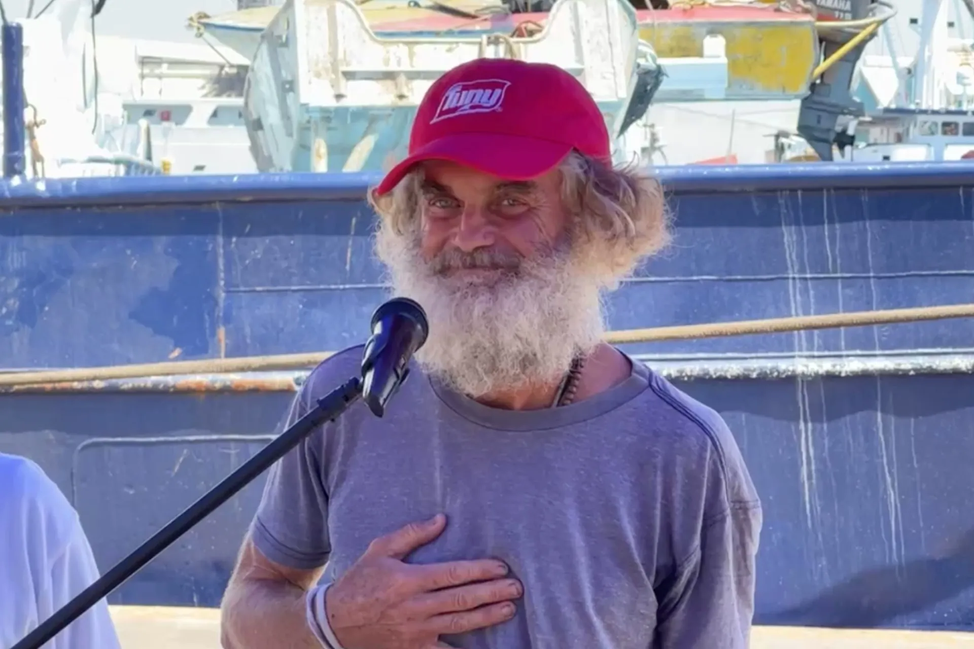 El náufrago australiano Timothy Shaddock y su perra Bella llegaron al puerto de Manzanillo, en el estado de Colima, a borde del buque atunero María Delia.