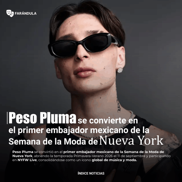 Además, Peso Pluma será parte estelar de NYFW Live, evento transmitido en vivo desde el icónico Rockefeller Center, donde moda y música se fusionan frente a los ojos del mundo entero.