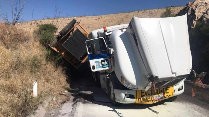 La Coordinación de Protección Civil en Sonora reportó a los automovilistas que se trasladan en la carretera ïmuris – Cananea manejar con precaución, al suscitarse un accidente de un tractocamión.