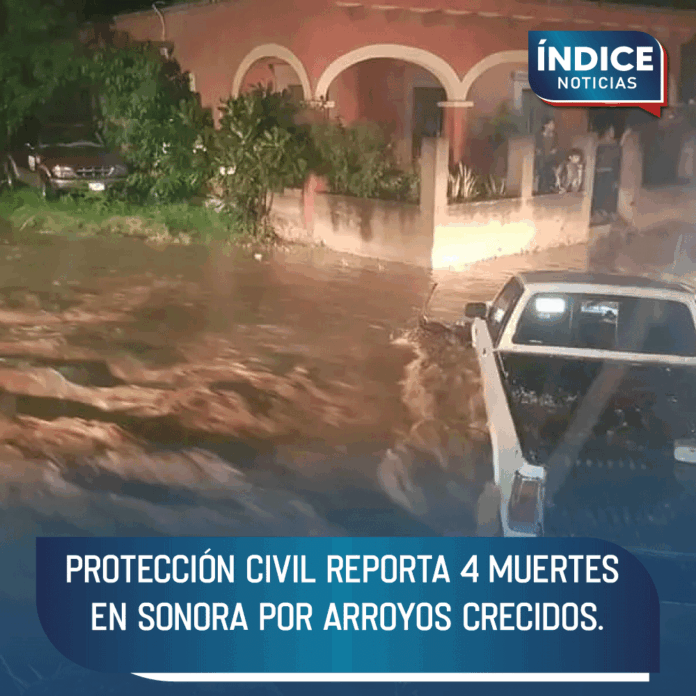 Las lluvias de la temporada han dejado un saldo trágico en Sonora, donde al menos cuatro personas perdieron la vida al ser arrastradas por arroyos crecidos, confirmó el coordinador estatal de Protección Civil, Armando Castañeda.