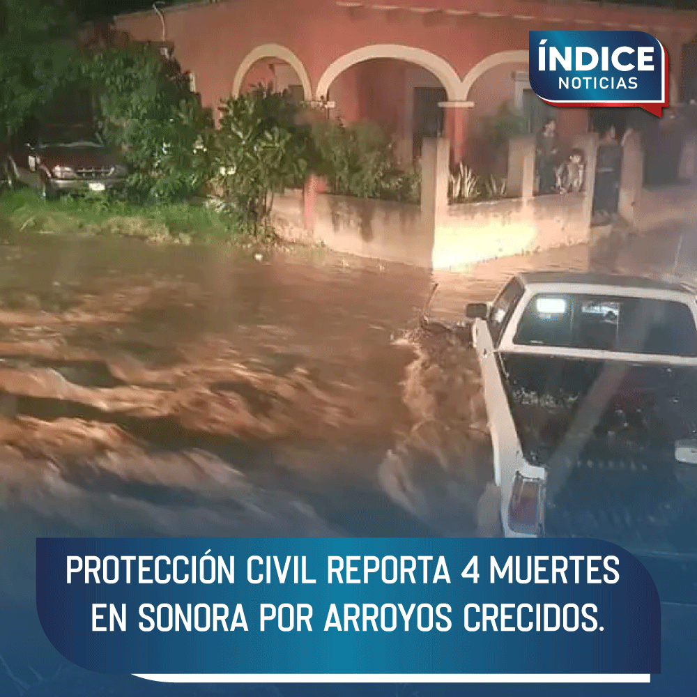 Protección Civil de Sonora confirmó la muerte de cuatro personas: dos jóvenes en Álamos, un adolescente en Sahuaripa y una mujer en Santana, quienes fueron arrastrados por arroyos durante las recientes precipitaciones.
