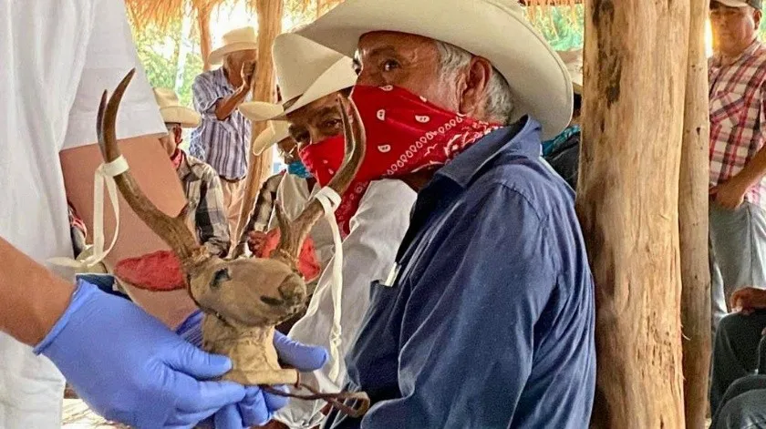 CIUDAD OBREGÓN, Sonora.- La nación yaqui recibió el Maaso Koba –cabezas de venado utilizadas como tocado en la Danza del Venado– y sus objetos ceremoniales, que fueron repatriados desde Suecia por la intervención directa del presidente Andrés Manuel López Obrador.