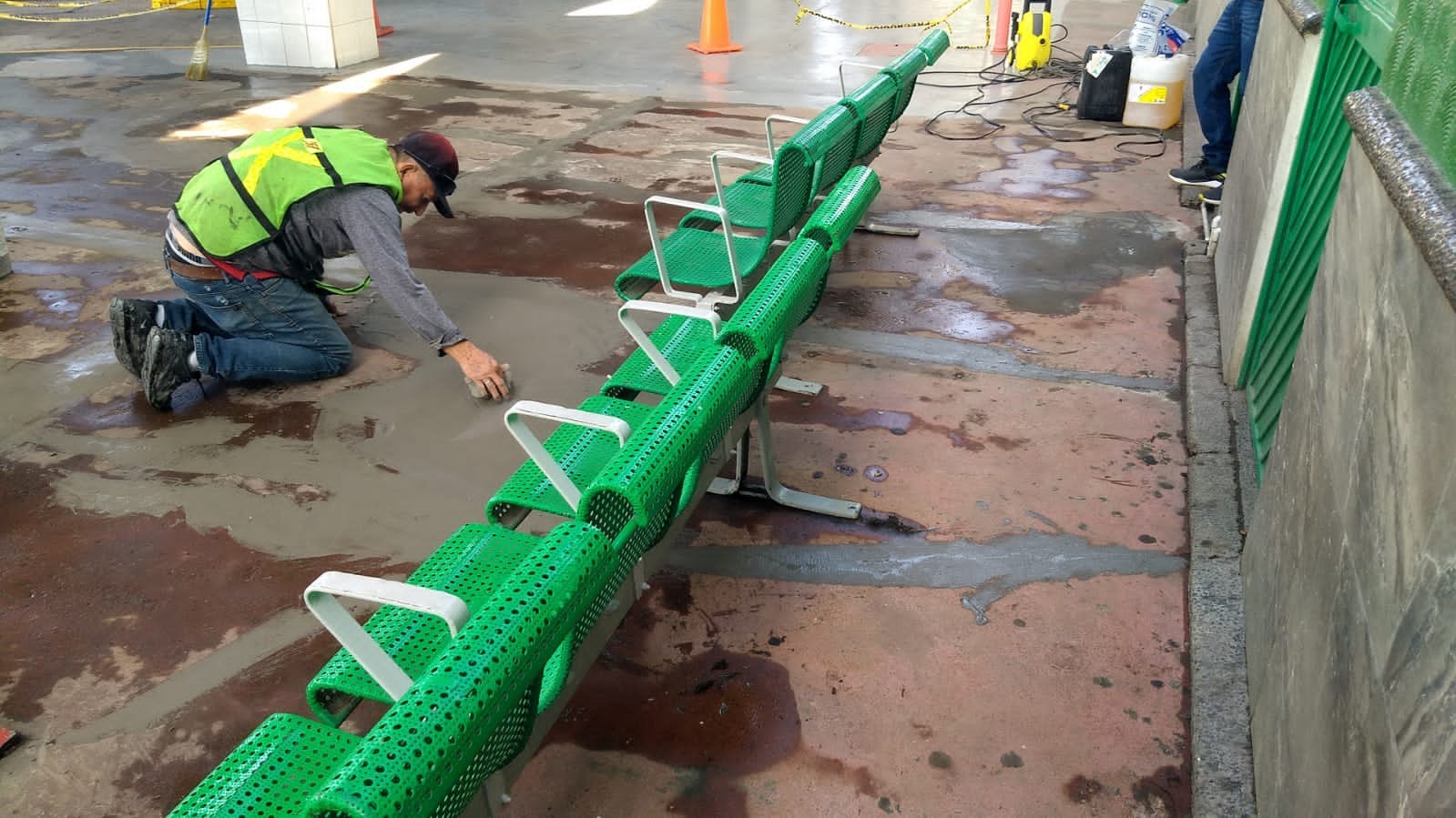 La rehabilitación consta de reparación de pisos con cemento y polímero epóxico, así como nivelado y pintura de los espacios de ascenso y descenso.