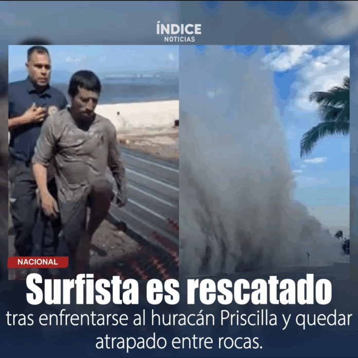 Un surfista puso en riesgo su vida la tarde del martes al ingresar al mar frente al Malecón, a la altura del estacionamiento Benito Juárez, pese a las condiciones adversas provocadas por el ciclón Priscilla, que azotó la costa del Pacífico mexicano con oleaje elevado y ráfagas de viento intensas.