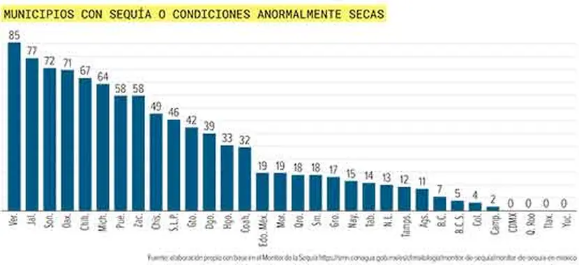 La sequía que azota al país se está extendiendo y agudizando aceleradamente. Con corte al 15 de marzo, se documentó en este espacio que había ya 329 municipios con condiciones anormalmente secas; 75 con sequía moderada; 44 con sequía severa; 126 con sequía extrema, y 55 municipios con sequía excepcional. En sólo un mes, esos números han cambiado drásticamente, y el escenario indica que las condiciones serán peores hasta la llegada de la temporada de lluvias.