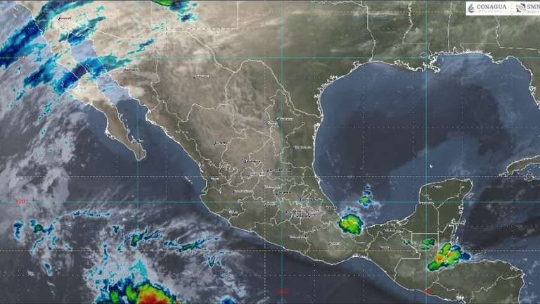 Por otro lado, canales de baja presión sobre el centro y el sureste del territorio nacional, incluida la Península de Yucatán, en combinación con la entrada de humedad desde el Océano Pacífico y el Golfo de México, originarán chubascos y precipitaciones puntuales fuertes sobre estados del oriente, sureste, occidente y centro.